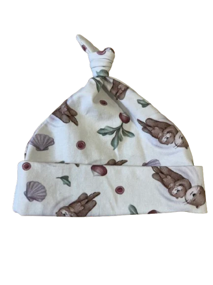 Livraison disponible à partir du 1 juin 2025 Chapeau en bambou ultra-doux et extensible Petit noeud ajustable 95% coton biologique et 5% spandex Bande qui se déroule pour s’ajuster à l’évolution de l’enfant 100% fabriqué au Québec S’agence bien avec toute la collection loutres et radis