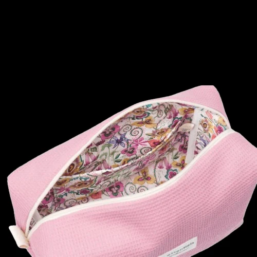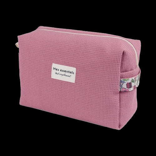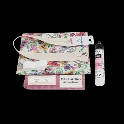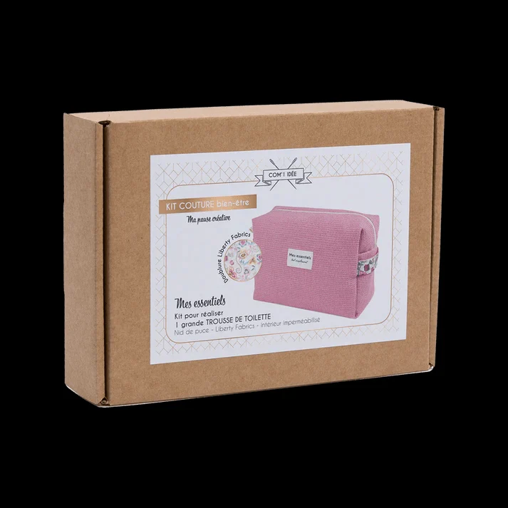 Réalisez une trousse de toilette format week-end pour y glisser «Vos Essentiels». Extérieur en tissu nid de puce (mini nid d’abeille) et doublure Liberty Fabrics, elle garde un style simple, élégant et fonctionnel. Grâce à l’Odicoat que vous appliquerez sur le Liberty, l’intérieur deviendra totalement imperméable. Pratique & astucieux ! Vous avez également une poche intérieure pour y glisser des petits accessoires. Et bien sûr la touche finale : une belle étiquette imprimée «Mes essentiels».